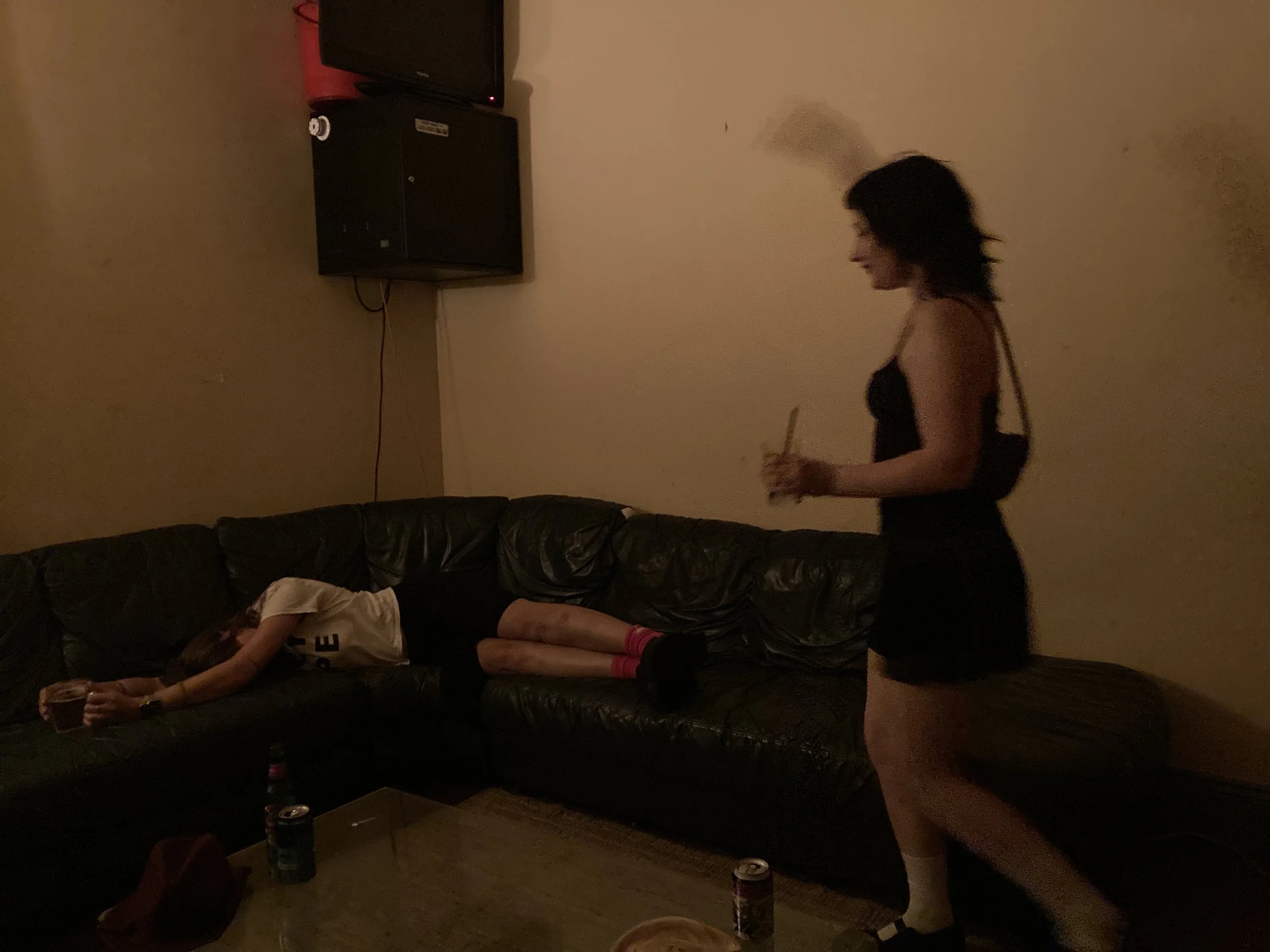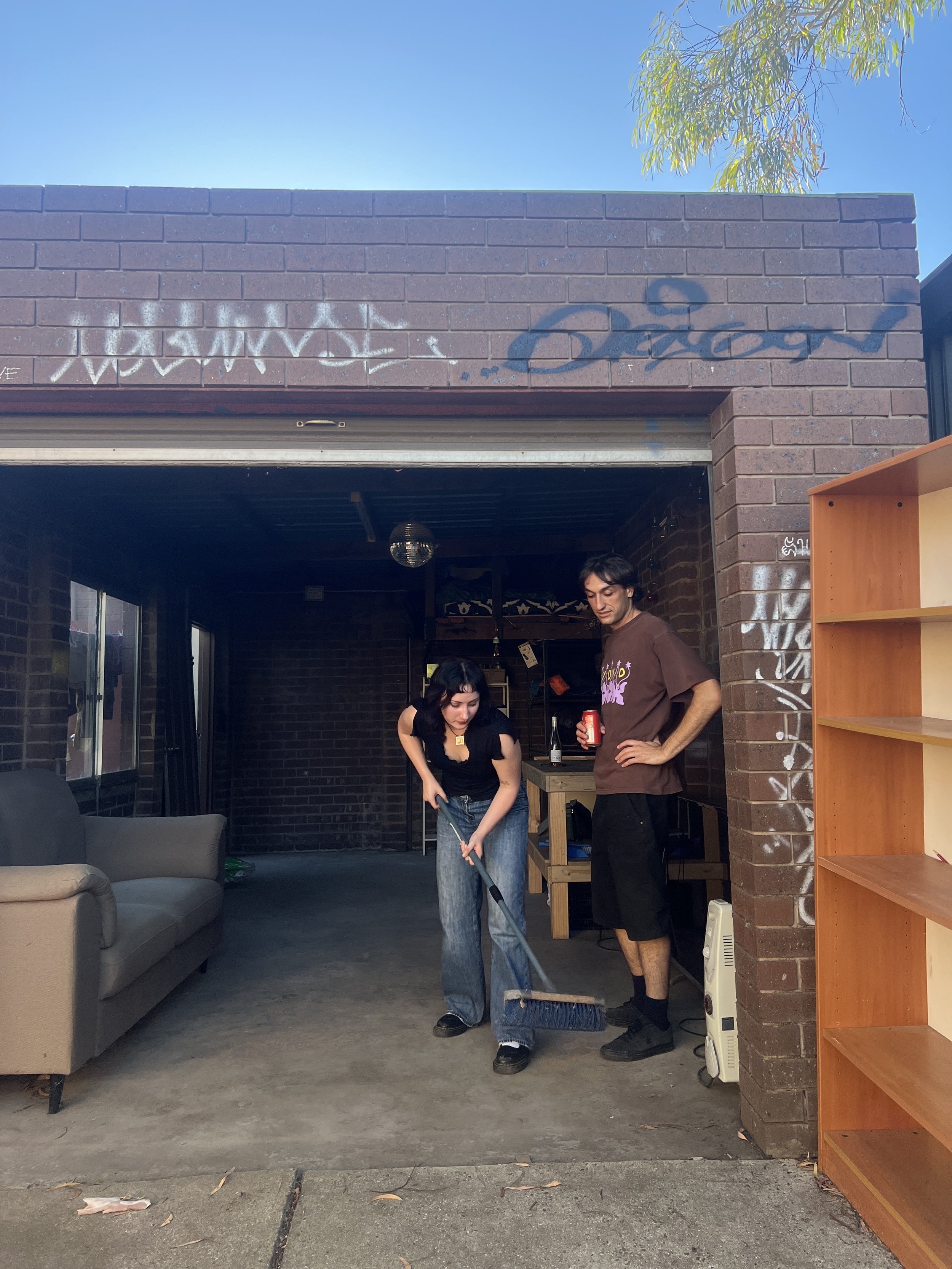 T: Yeah, there's a disco ball hanging from the roof and there's like all these lights and there's all the iterations of my house that's been a share-house for so long. All their shit has built up in there. We were going through it the other day and we, as I was telling you, found all that camping gear that they probably bought to go to Meredith.